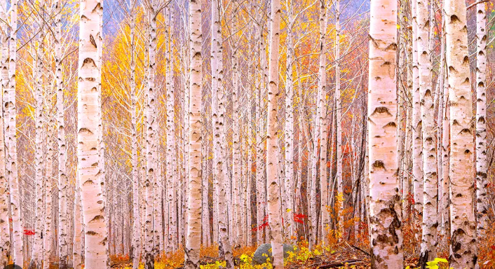 - 가을: 자작나무 잎이 노랗게 물들며 황금빛 바다를 이룹니다.