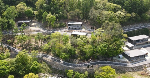 - 노목 구역: 4인실 (33㎡) 위주로 구성되어 있으며, 각 동이 별처럼 립(立)되어 배치되어 있어 프라이버시가 확실히 보장됩니다. 각 실 앞에 전용 주차 공간이 2대씩 배정되어 있어 차량 이용이 매우 편리합니다.