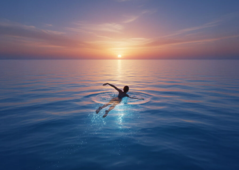 결론적으로, 바다 한가운데서 헤엄치는 꿈은 당신의 삶이 '작은 우물'을 벗어나 '대양'으로 나아가는 변곡점에 서 있음을 뜻합니다. 당신이 젓는 그 팔사위 끝에 찬란한 황금빛 당첨의 소식이 기다리고 있을 것입니다.