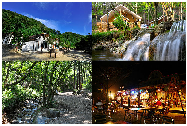 - 개울가마을: 계곡과 가까워 물소리를 들을 수 있는 객실 (130,000원 ~ 200,000원 대)