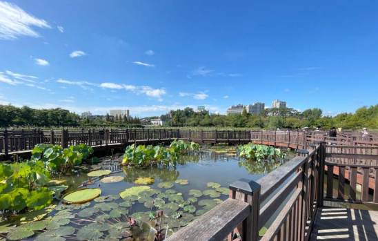 3. 항동저수지 데크길: 수목원 내 항동저수지를 가로지르는 데크길은 푸른수목원의 하이라이트 중 하나입니다. 잔잔한 수면 위를 걸으며 물속 생물들과 주변의 아름다운 풍경을 감상할 수 있습니다. 벤치에 앉아 조용히 사색에 잠기거나, 새소리와 바람 소리를 들으며 온전히 휴식에 집중하기 좋은 곳입니다.