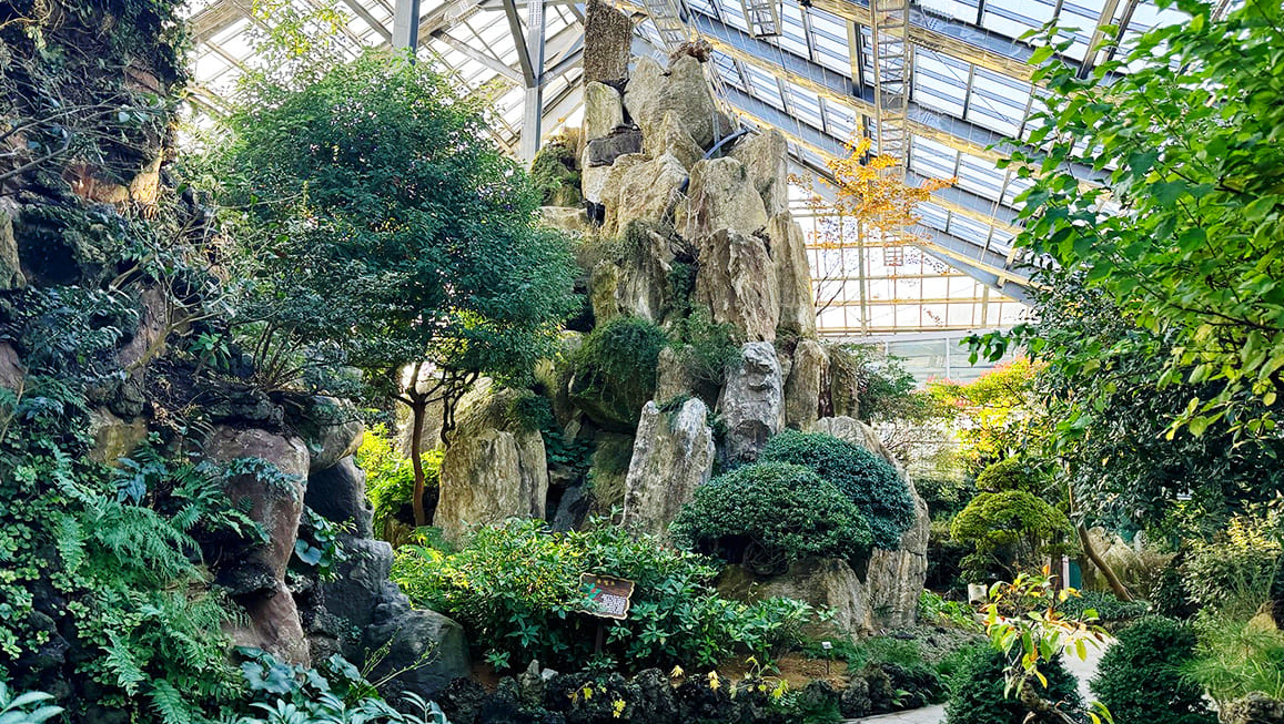 - 팔도 명산 재현: 온실 내부에는 백두산, 한라산, 설악산, 태백산, 지리산 등 우리나라 $5$대 명산을 형상화한 거대한 **석산(石山)**이 조성되어 있습니다. 이 석산 주변으로 각 산악 지대에서 자생하는 고산 식물과 희귀 야생화가 전시되어 있어, 마치 팔도강산을 여행하는 듯한 느낌을 줍니다.